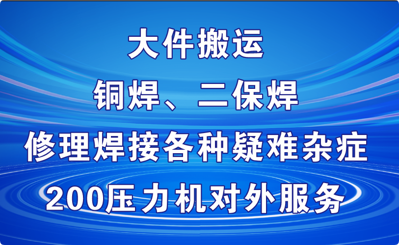 本地服务 底价租叉车大件搬运铜焊、二保焊修理焊接各种疑难杂症200压力机对外服务...